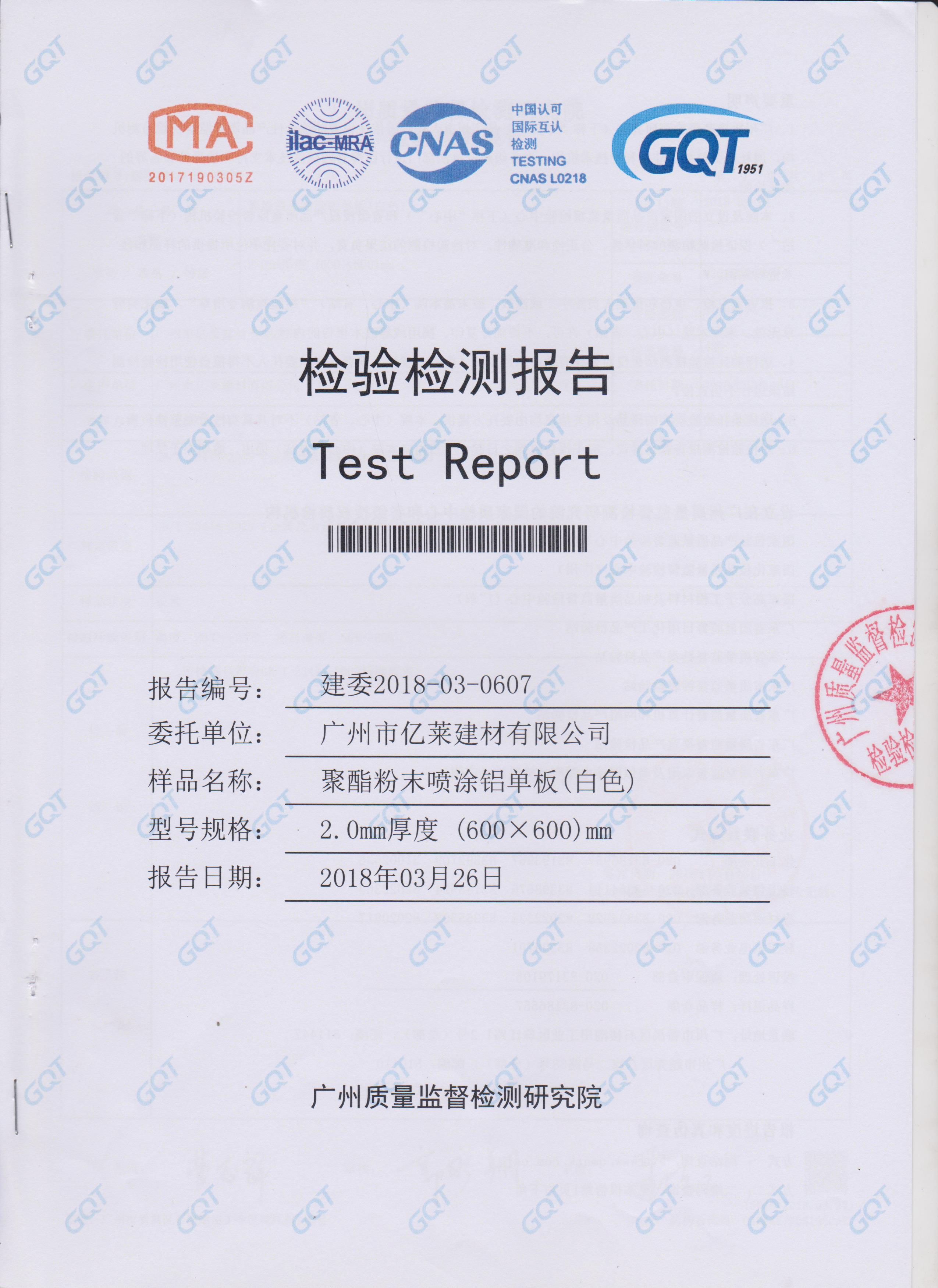 聚酯粉末噴涂鋁單板(白色)檢測報告-1