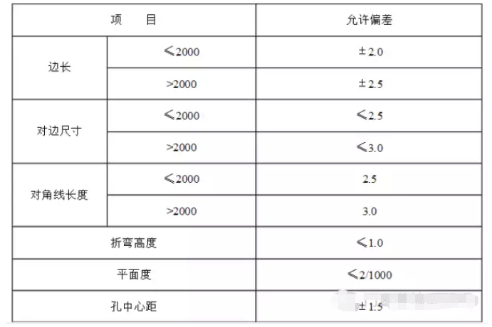 4、鋁單板加工尺寸允許偏差:單位(mm)