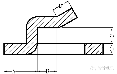 4.11壓縮抽形2 (Rd>1.5T) 原則:直邊部分按彎曲展開(kāi),圓角部分按拉伸展開(kāi),然后用三點(diǎn)切圓(PA-P-PB)的方式作一段與兩直邊和直徑為D的圓相切的圓弧. 當(dāng)Rd>1.5T時(shí): l按相應(yīng)折彎公式計(jì)算. D/2={(r+T/3)2 +2(r+T/3)*(h+T/3) -0.86*(Rd-2T/3)*[(r+T/3) +0.16*(Rd-2T/3)]}1/2 |